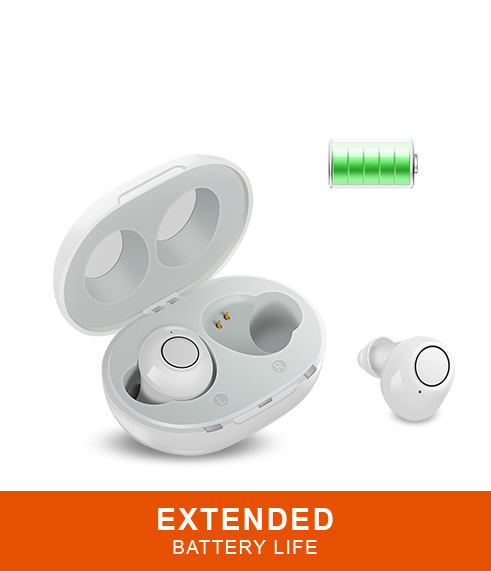 No more fumbling with tiny batteries. Melofairs are completely rechargeable with portable mini-size charging case. The Wireless Charging Case delivers 16 hours of battery life. No fear of running out of energy when you explore the boundary of your life with friends and families.